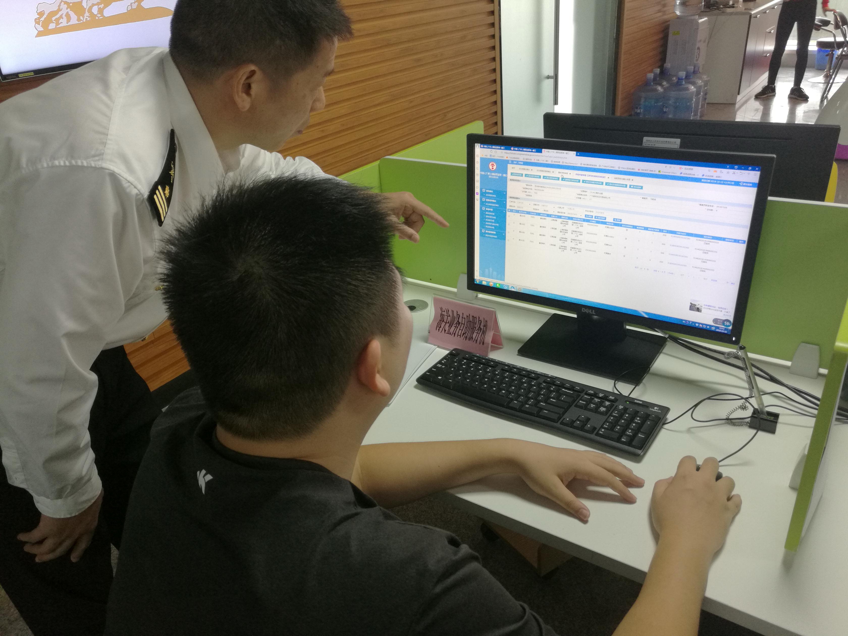 广州海关驻会展中心办事处现场关员指导参展商通过“会展e通”信息化系统办理展会登记手续。