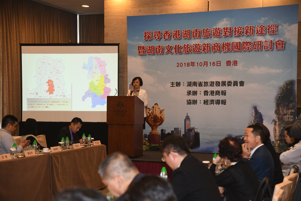 【香港商報網訊】記者張思靜、張芃芃報道:「探尋香港湖南旅游對接新路徑暨湖南文化旅游新商機國際研討會」昨日假海逸君綽酒店舉行,湘港兩地60餘位各界友好通過討論湖南特色景點、產品、服務及分析兩地旅游發展前景,為兩地旅游業的深度合作開辟新思路與新局面。湖南省旅游發展委員會主任陳獻春委託該委市場處處長黃國斌致辭時表示,湖南省將大力開發新線路、新景點,誠邀香港游客利用高鐵之便,感受瀟湘魅力。