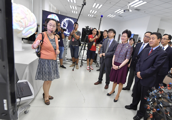 林鄭月娥(前排右二)今年7月訪京期間,參觀了中科院自動化研究所,並聽取有關科研成果介紹。