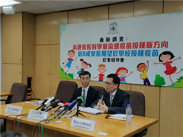 問卷調查共訪問了139位3至12歲兒童的家長。該會會長、藥劑師崔俊明說,沒安排子女接種疫苖家長中,有60.3%是擔心疫苗有副作用,其次43.8%認為疫苗作用不大。公共衛生醫學專科醫生江永明表示,不少港人對流感疫苗存在謬誤,如有人指接種流感疫苗可引致病毒感染。他強調,疫苗經多次反覆測試及檢測,被證實安全才會推出市面,疫苗內的病毒已弱化或死亡,不會致病。
