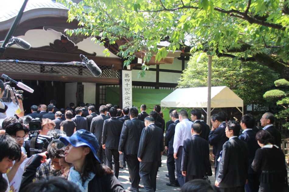 9月17日至20日是日本靖国神社例行的“秋季大祭”。据日本共同社18日报道,包括部分安倍新内阁成员在内,当天约有70名保守派国会议员参拜靖国神社。正在欧洲进行访问的日本首相安倍晋三并未前往参拜,但他17日向靖国神社供奉了“玉串料”。针对安倍及日本议员上述举动,中韩两国政府均发表声明,再次敦促日本正视历史。