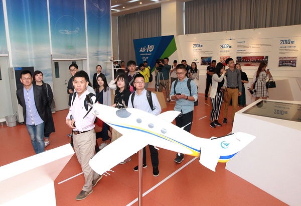 十年来,航空产业园贯彻落实创新驱动核心发展战略,积极搭建创新平台,支持创新要素向市场主体聚集,鼓励龙头企业吸纳全球创新资源。分别与广东省科学院合作成立了航空航天装备研究所,并支持中航通飞等大型企业设立了中航通飞研究院;鼓励中航通飞公司与以色列宇航工业公司(IAI)合作开展新一代多用途整机、与法国飞鲸控股公司开展重型飞艇的合作研发制造;中航通飞公司研发试制的国家重点型号AG600,为中国具有完全自主知识产权、目前世界在研最大的水陆两栖通用飞机,是与中国商飞公司的C919大型客机、西飞公司的运20大型运输机并列的“国家三个大飞机工程”之一。该机已于2017年12月24日在园区金湾机场成功实现了陆地首飞,将于2018年10月20日完成水上首飞。