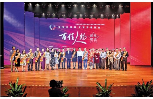 今年7月,区文联组织开展了宝安区首届文艺志愿服务“百佳人物”投票评选活动,取得了圆满成功。综合评定100名获奖人员,其中社会投票占比重40%、专家评审占比重60%。
