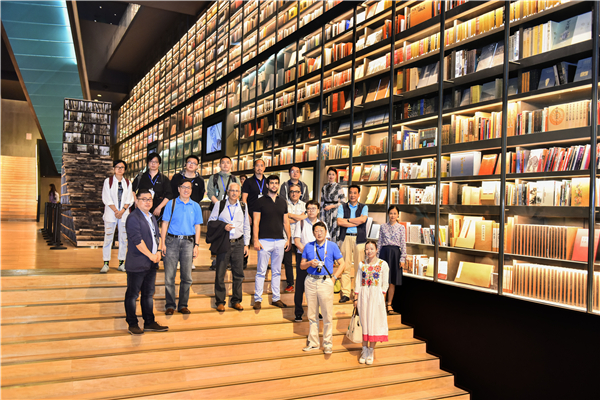 而隨後奉上的「大菜」就有點讓人目不暇接,中國最大的書牆,陳列着的各國難得一見的古籍,朝日新聞的記者在書牆一樓,對這裏收藏的「日本風俗畫」發生了興趣,印度教徒報AtulAneja則在印度佛教書前停下了腳步。