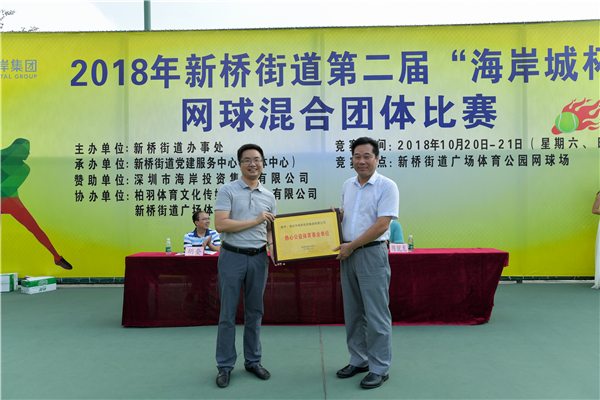 主办方表示,体育事业的繁荣发展离不开热心企业的大力支持,本次赛事得到深圳市海岸投资集团有限公司的大力支持和赞助,为新桥街道体育事业的发展做出了贡献。主办方授予深圳市海岸投资集团有限公司颁发热心体育事业单位奖。