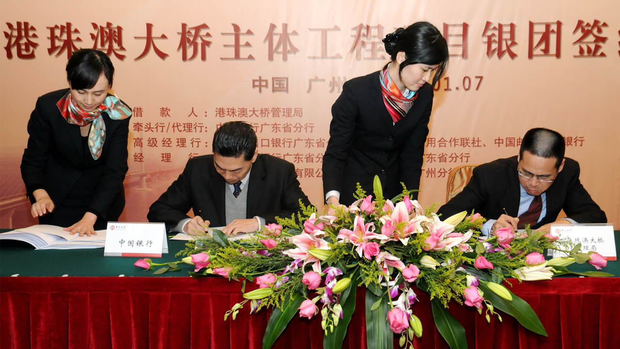 2011年1月,港珠澳大桥主体工程项目银团签约