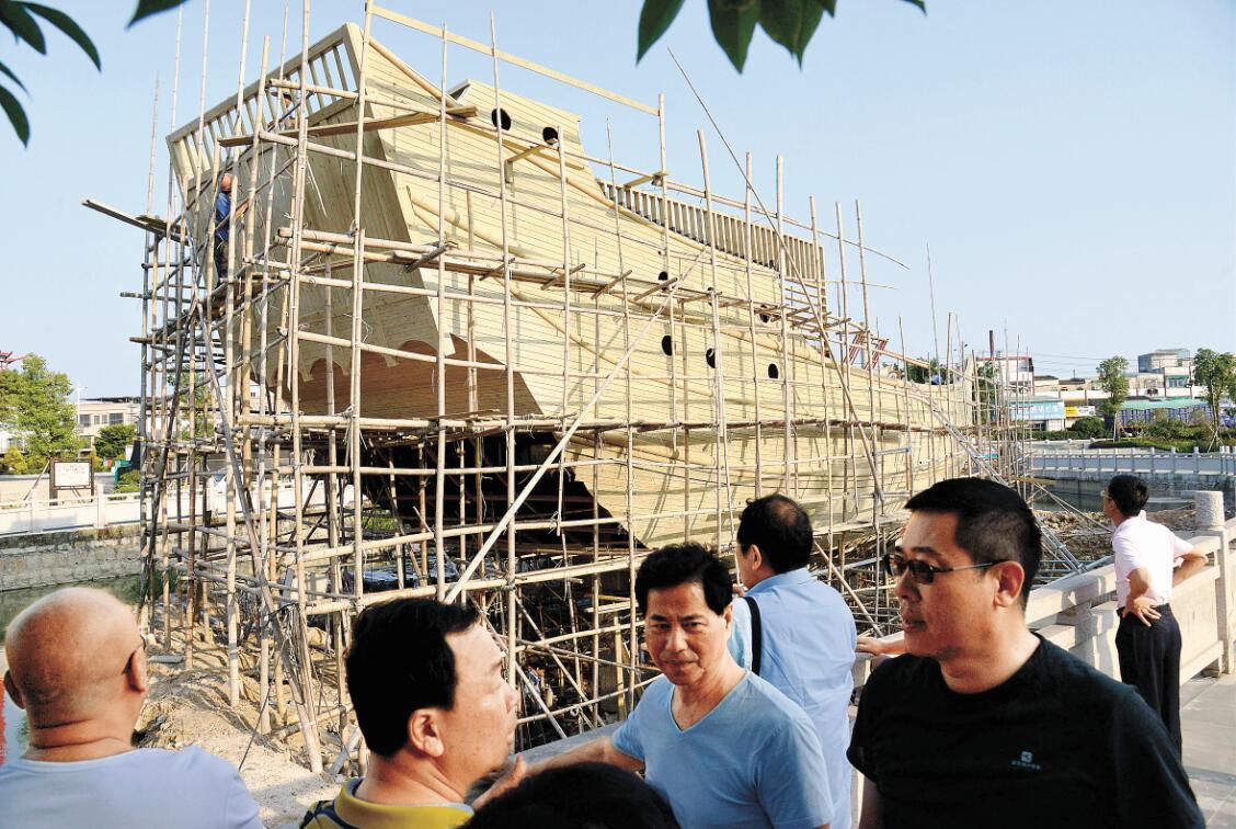 從喧鬧的都市尋訪至新興街不過數十里路程,卻恍若時光倒流,漫步於寂靜的老街,古色古香的貨棧鋪戶依稀可辨,一楹一柱、一磚一瓦卻因風雨沖洗褪盡顏色,老街難掩滿臉滄桑。歷經兩個世紀的變遷,新興街繁華不再,但遺蹟猶存。樟林古港是「紅頭船精神」的發源地,承載着無數海內外潮人的鄉愁。近來,當地不斷開展環境整治及保護修復工作,讓樟林港恢復生機、古韻重現。今年,樟林古港二期保育活化建設工程啟動,計劃在古港河建造一艘仿真紅頭船,現場,工人們正在緊鑼密鼓的施工。