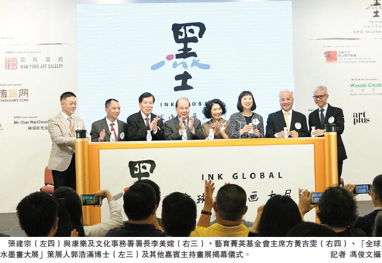 藝育菁英基金會昨日舉辦「全球水墨畫大展」,張建宗出席開幕禮時表示,基金會去年首次舉辦的展覽,吸引超過5萬名藝術愛好者到場參觀,成績令人鼓舞,故今年再接再厲,在9月和10月把「全球水墨畫大展」走出香港,在敦煌展出500位水墨畫精英的大作,更邀請20名本地大學生融匯科技和傳統藝術,將20幅大師作品化身成為動畫,與大師作品並列展出,這些大學生更親身到敦煌為觀眾講解,促進文化交流。