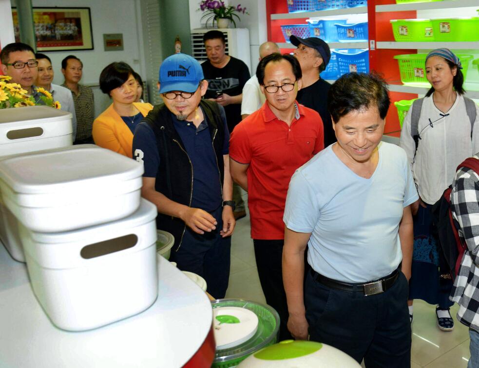 隨後,作家一行前往廣東海興塑膠有限公司參觀。瀝水的洗菜碗、可以紫外線除菌的儲物櫃、用麥稈製造的水杯……各式的塑膠產品,令作家們應接不暇。天津市作協副主席、中國作協全委會委員龍一對美食頗有研究,看到可以瀝水的洗菜碗,馬上指出這是「做沙拉用的」,搖動把手,便可以通過離心力將蔬菜上的水分甩乾,特別實用。