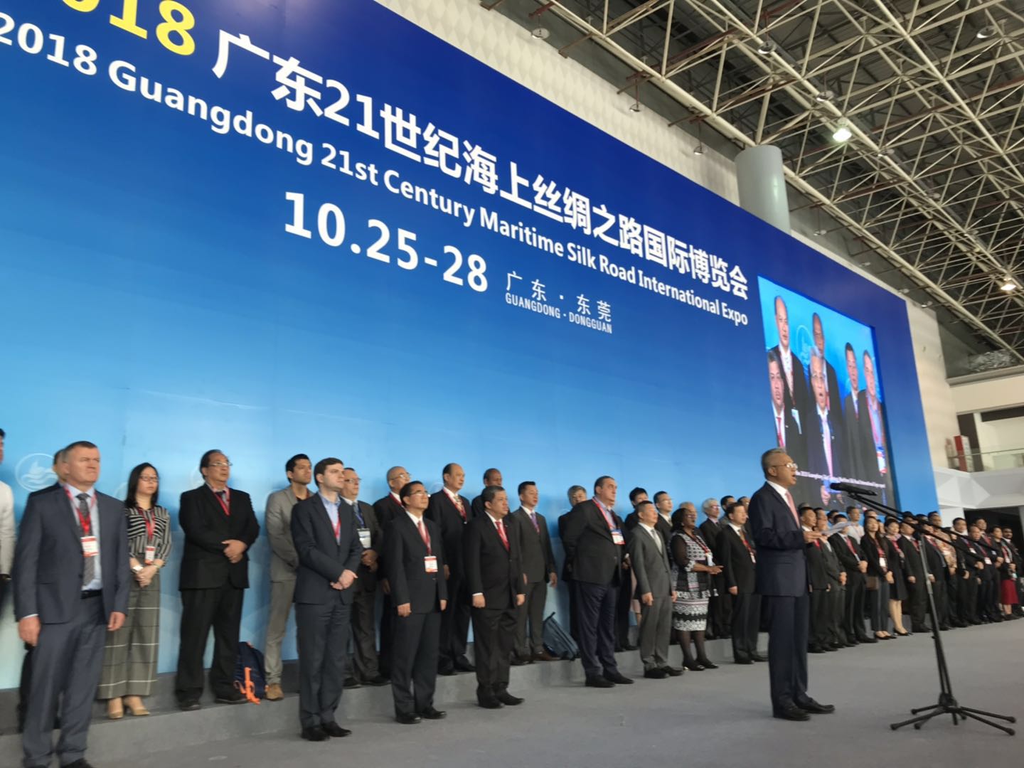 【香港商报网讯】记者李苑立、冷运军报道:10月25日上午,为期四天的2018广东21世纪海上丝绸之路国际博览会(下简称“海丝博览会”)在广东东莞开幕。广东省副省长陈良贤,广东省政府副秘书长林积,东莞市委书记梁维东、市长肖亚非以及海上丝绸之路沿线国家和地区的相关政府官员、驻穗领团以及参展商代表近千人参加活动。