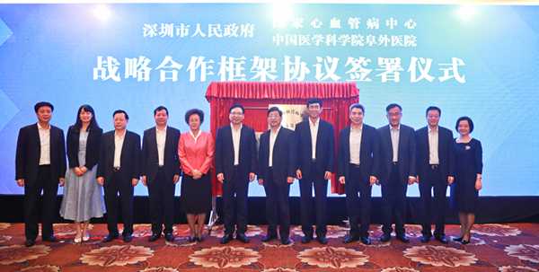 国家卫生健康委副主任曾益新,中国医学科学院北京协和医学院党委书记、副院校长李国勤,国家心血管病中心主任、中国医学科学院阜外医院院长胡盛寿,深圳市委副书记、市长陈如桂,深圳副市长吴以环出席签约仪式。