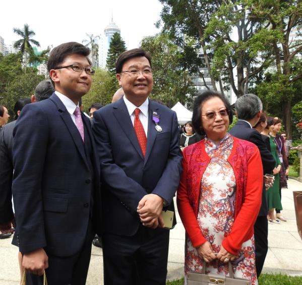 獲頒銀紫荊星章的香港公开大学校长黃玉山(中)