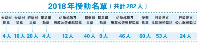【香港商報网訊】記者戴合聲、林駿強報道:特區政府昨日於禮賓府舉行2018年度勳銜頒授典禮,表揚282位對社會有傑出貢獻的各界人士,其中4人獲得屬於最高榮譽的大紫荊勳章。多位得獎者分享感受,其中獲得大紫荊勳章的鄉議局副主席張學明表示,對於獲表揚感到開心,認為這是對自己數十年社區工作的肯定。亦有獲授勳的人士稱,會繼續服務社會,呼籲各界為社會發展共同努力。