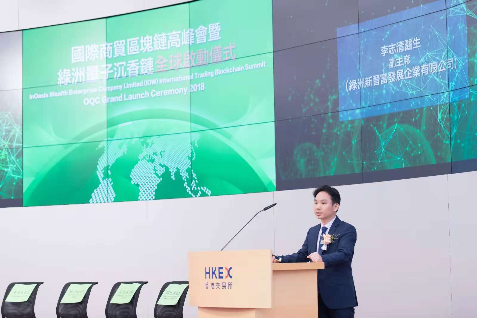 10月27日,「國際商貿區塊鏈高峰會暨綠洲量子沉香鏈全球啟動儀式」于香港交易所金融大會堂舉行。峰會吸引了三百餘位來自世界各地的業界人士及投資者。