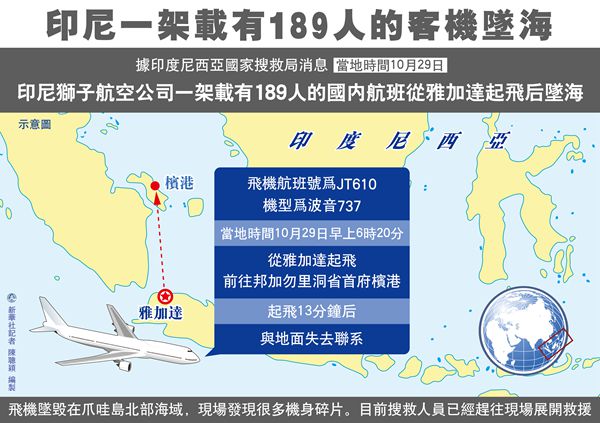 【香港商報网訊】印尼國家搜救局昨日表示,印尼獅子航空公司一架載有189人的國內航班從雅加達起飛後墜海,已確認機上人員全部遇難,救援人員已找到6具遇難者遺體。據悉,失事客機屬於波音737 MAX機型,今年8月剛剛投入運營。