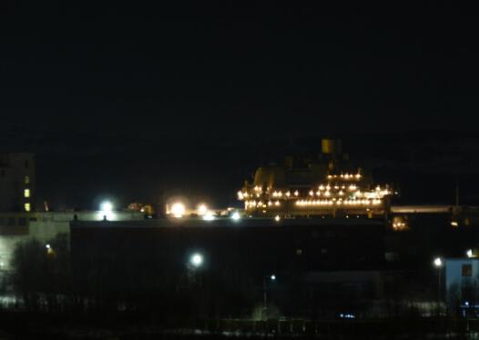 据悉是在PD-50浮动船坞内进行维修的库兹涅佐夫号航母拍摄于摩尔曼斯克的凌晨(图源:社交媒体)