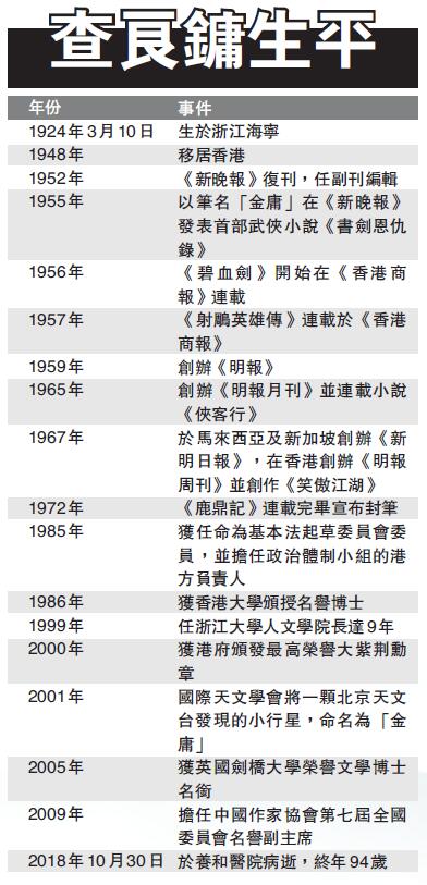 香港武俠小說大家金庸昨日下午在港逝世,享年94歲。