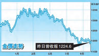 原油期貨繼續探底,自10月初國際貨幣基金(IMF)下調明年經濟增長,油價從高位76.9美元跌至上周最低65.75美元,不是說11月制裁伊朗嗎?怎會從高位掉下來,道理很簡單,早前炒高的溢價消失了。油價後市視乎經濟,貿易戰有點影響,但不至於跌這麼多,油價仍然在62至72美元波幅區間上落。金價受制於美元上升,上周金融市場震蕩,資金推高金價至1240美元,暫時不宜高追,建議1220至1224美元買入,穿1117美元止蝕,收盤高於1245美元加碼,目標價1260美元。