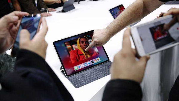 iPad Pro配备了苹果最强大的移动处理器——A12X仿生芯片,借鉴了iPhone X的技术:使用FaceID摄像头和更窄的边框,让屏幕更加靠近设备边缘。在两款新iPad机型中,更大的一款和美国信纸差不多大,8.5x11英寸,重量为1.4磅(约合0.6公斤),比前一代机型更轻。