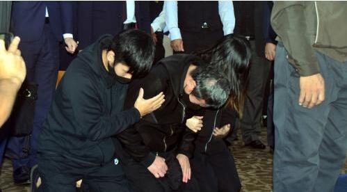 尤振仲哭喊着说“对不起”,随即下跪磕头,不停道歉,称“这是我心中永远的痛”。