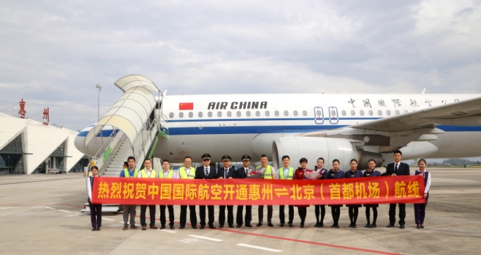 【香港商报网讯】记者卢伟、通讯员秦海伟报道:11月1日,中国国际航空一架从北京首都国际机场飞来的A320客机于下午1点10分平稳降落惠州机场,这标志着惠州=北京(首都机场)”新航线首航成功。