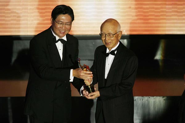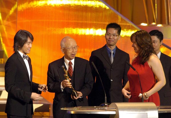 鄒文懷(右)獲得第27屆香港電影金像獎終身成就獎。