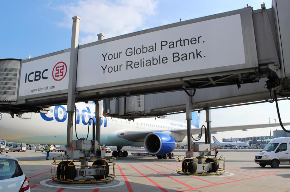 2013年2月1日,德国法兰克福国际机场外廊桥上的工行形象广告。