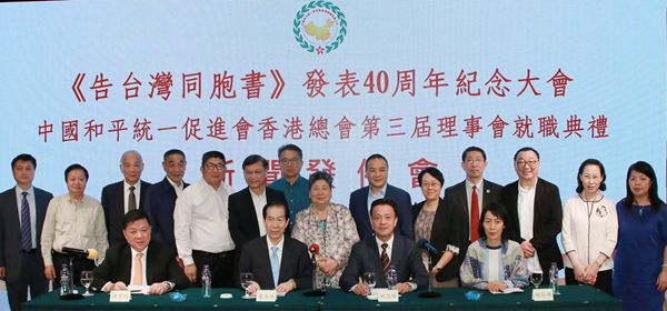 中國和平統一促進會香港總會昨日舉行記者會,公布將於下周二(13日)於灣仔會議展覽中心1樓會議廳舉行「《告台灣同胞書》發表40周年紀念大會 」;同時舉行「中國和平統一促進會香港總會第三屆理事會就職典禮」。