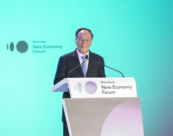 王岐山在新加坡「創新經濟論壇」開幕式上致開幕辭。 新華社
