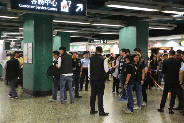 大批重案组探员到港铁站大堂调查。