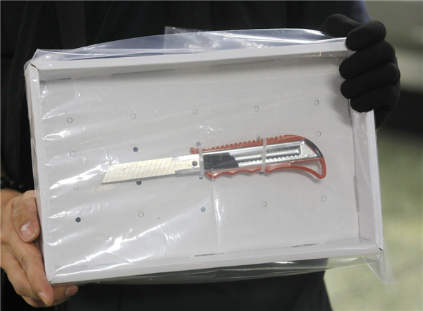 警方检获的涉案鎅刀。