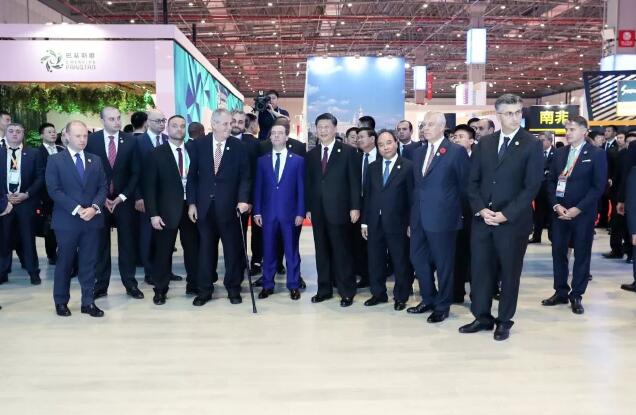 ▲11月5日,国家主席习近平在上海同出席首届中国国际进口博览会的外国领导人共同巡馆。(新华社)