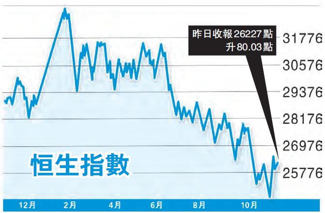 備受國際矚目、選情激烈的美國中期選舉,其結果大致與市場主流預期相若。在市場開始估計當地加息步伐可能轉趨審慎下,美股三大指數周三立竿見影顯著上升,升幅介乎2.12%至2.64%不等。儘管港股周四或多或少受惠美股升勢而走高,但當前恒生指數繼續受制50天平均線阻力(現於26544點),主因港股目前仍然受困三大不明朗因素。