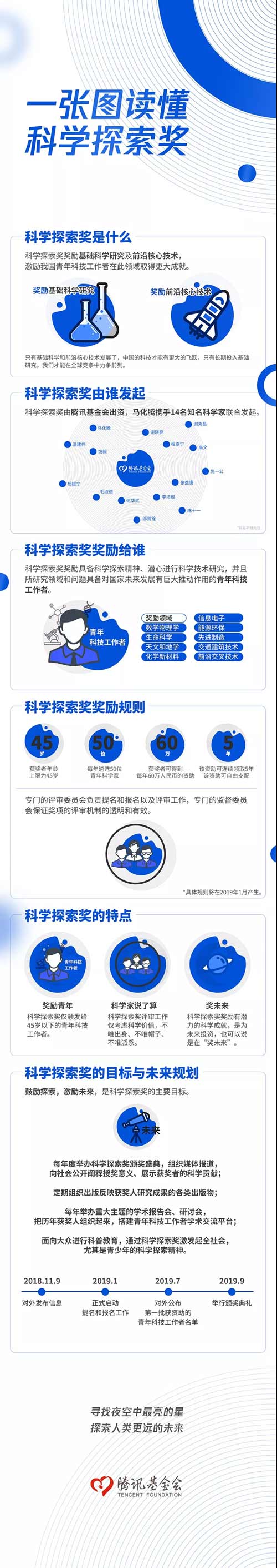 按計劃,「科學探索獎」每年將從數學物理學、生命科學、天文和地學、化學新材料、信息電子、能源環保、先進製造、交通建築技術、前沿交叉技術9個基礎科學和前沿核心技術領域,選出50名青年科技工作者,每位獲獎者將連續5年、每年獲得60萬元人民幣資金。獲獎人年齡上限為45歲。