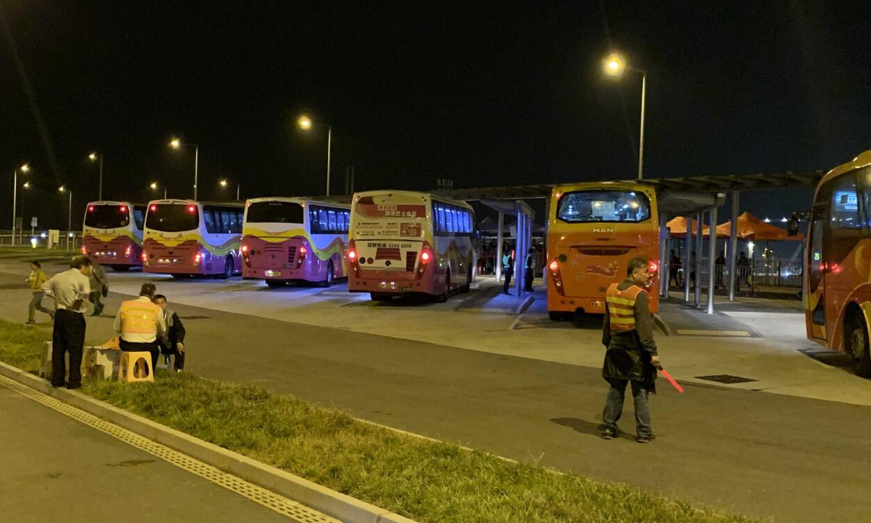 至於在過關後的直通巴士站,有接近20架特別調配的巴士接送旅行團旅客前往珠海與澳門口岸,但未有出現上周大排長龍的情況,旅行團旅客幾乎不用排隊就可以上車。