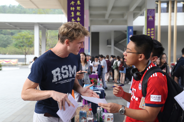 【香港商报网讯】记者林丽青报道:香港中文大学(深圳)12日举办首届国际伙伴日活动。来自全球18所海外知名院校相聚在港中大(深圳),通过展位宣传、宣讲会等形式向港中大(深圳)学生介绍海外学习项目,让同学们身处校园,就能与世界顶级院校面对面交流。据悉,国际伙伴日以后将作为大学的常规化活动,每年举办一次,以此作为大学乃至深圳对外交流与合作的重要窗口之一。