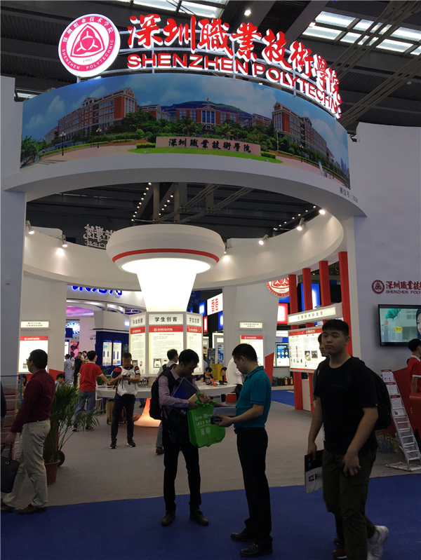 与以往不同,今年深职院在高交会展台正中央还专门开辟空间为我校的学生创客项目提供了一个展示自我的舞台。智能空气检测器、智能陪伴机器人、手机无线充电装置、智能会议嘉宾桌牌、同桌一体机、基于ARM平台的智能家居中控设备……这六件充满“深职创客”元素的优秀学生创客作品,一经展出,就收获了不少观众的目光。