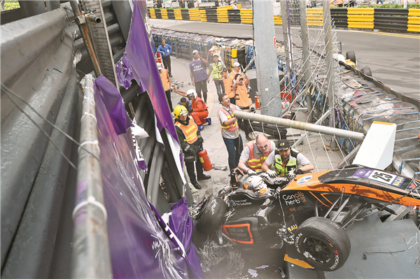 【香港商報网訊】記者馮仁樂報道:澳門大賽車壓軸賽事國際汽聯三級方程式世界盃(F3)昨日舉行,期間發生嚴重意外,17歲德國女車手佛羅絲在葡京彎前懷疑失控,整輛方程式賽車騰空而起,飛躍越過整條行車道,直插賽道外欄的傳媒採訪區,多名攝影師爭相走避,2名攝影師受傷,賽會即時暫停賽事,展開搶救,合共5人受傷,全部清醒獲送院,並無性命危險。