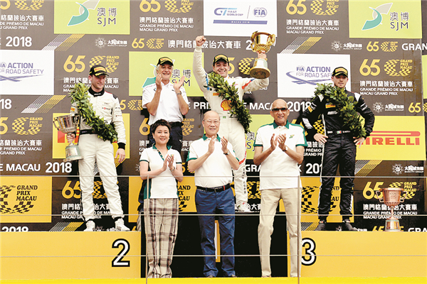 此外,由澳門博彩股份有限公司連續第4年冠名贊助的「澳博澳門GT盃──國際汽聯GT世界盃」同於昨天上演決賽,最後由巴西車手法夫斯(Augusto Farfus Jnr.)勇奪冠軍,亞軍及季軍則分別為晏高(Maro Engel)及莫他拿(Edoardo Mortara)。賽後由澳博董事局主席蘇樹輝博士、常務董事兼行政總監梁安琪女士,以及董事官樂怡大律師向得獎車手頒發獎盃。