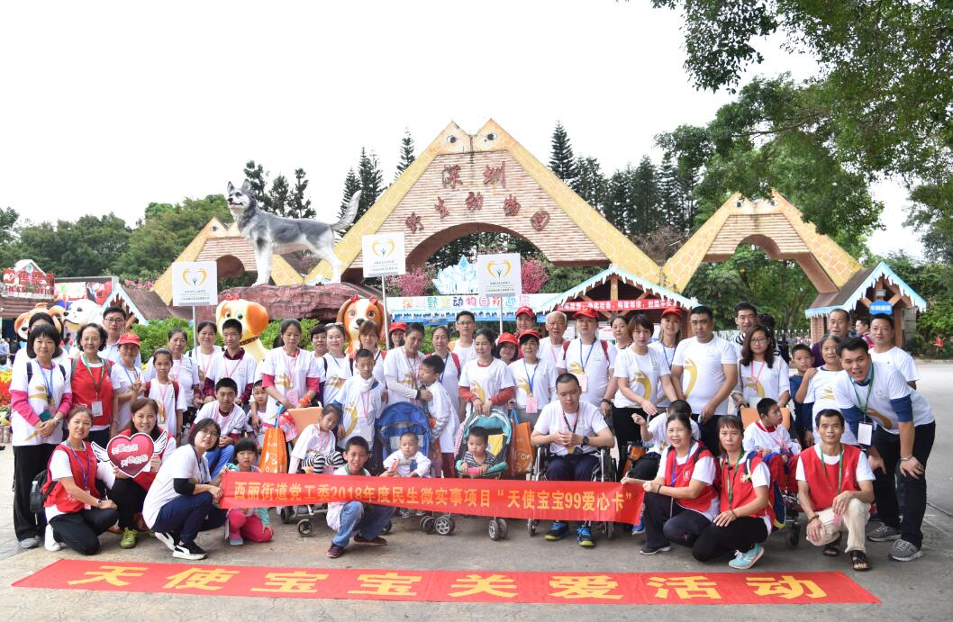 【香港商报网讯】记者黄凤鸣报道:11月18日10:00, 深圳市野生动物园门前迎来了一批特殊的客人,他们身上穿的天使家园T恤格外醒目,他们是来自深圳南山区西丽街道20户天使宝宝脑伤(瘫)患儿家庭40余人和西丽义工队巾帼义工队20位志愿者。