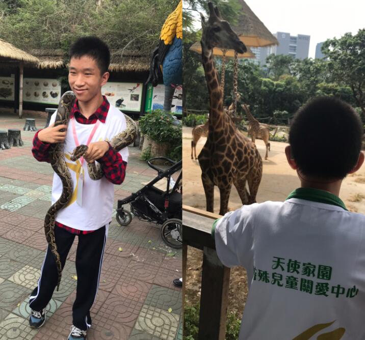 每一次活动对这些折翼天使来说都是弥足珍贵,宝宝们看到了大象长颈鹿河马和犀牛,看到了悦耳动听的百鸟飞翔,博森还在妈妈鼓励下勇敢地体验了蟒蛇缠身的清凉和刺激,下午的海洋天地高台花样跳水和海狮表演让宝宝们兴奋不已。