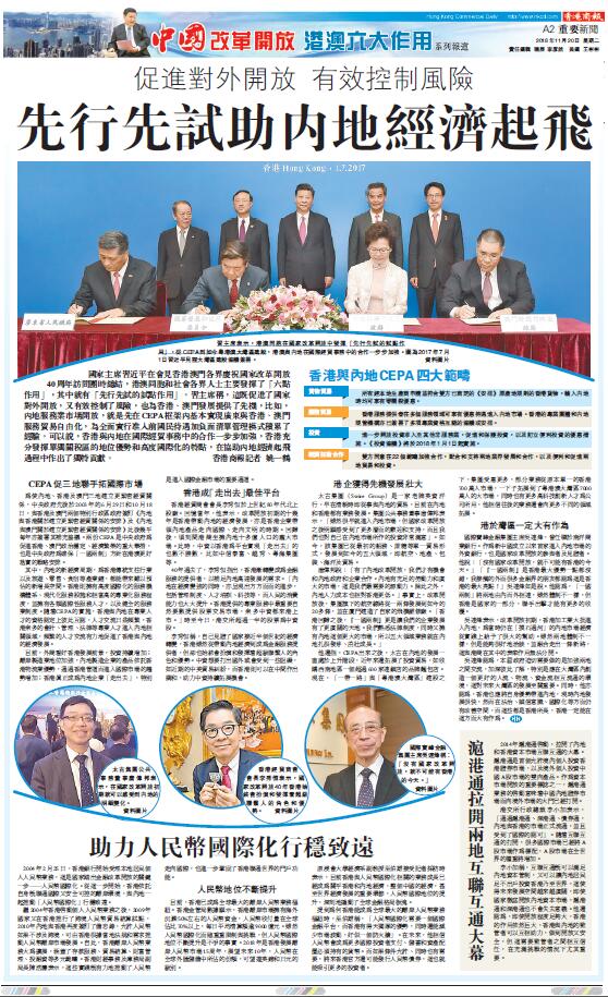【香港商报网讯】國家主席習近平在會見香港澳門各界慶祝國家改革開放40周年訪問團時總結,港澳同胞和社會各界人士主要發揮了「六點作用」,其中就有「先行先試的試點作用」。習主席稱,這既促進了國家對外開放,又有效控制了風險,也為香港、澳門發展提供了先機,比如,內地服務業市場開放,就是先在CEPA框架內基本實現廣東與香港、澳門服務貿易自由化,為全面實行准入前國民待遇加負面清單管理模式積累了經驗。可以說,香港與內地在國際經貿事務中的合作一步步加強,香港充分發揮單獨關稅區的地位優勢和高度國際化的特點,在協助內地經濟起飛過程中作出了獨特貢獻。香港商報記者 姚一鶴