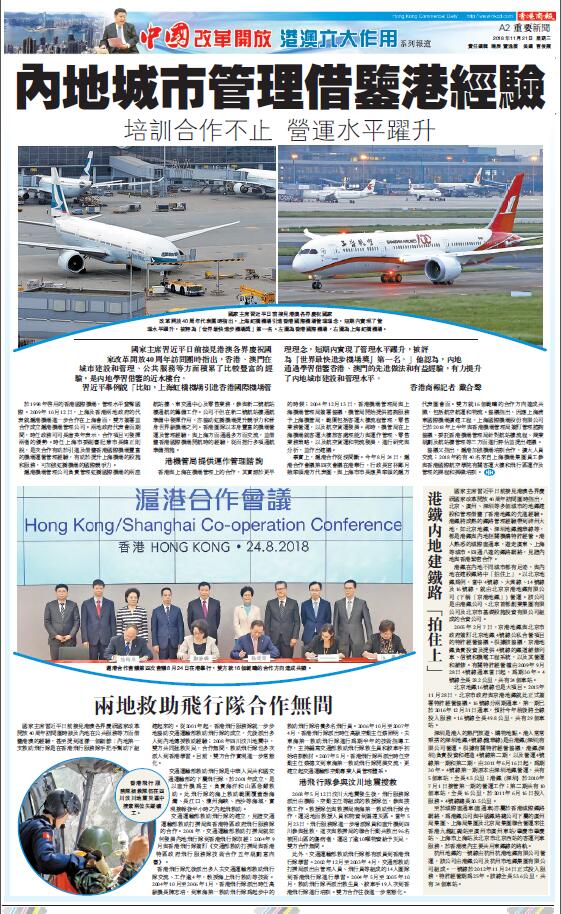 協議又指出,滬港加強機場培訓合作,擴大人員交流;2018年約有40名來自上海機場集團員工參與香港國際航空學院有關客運大樓和飛行區運作及管理的課程和掛職培訓。
