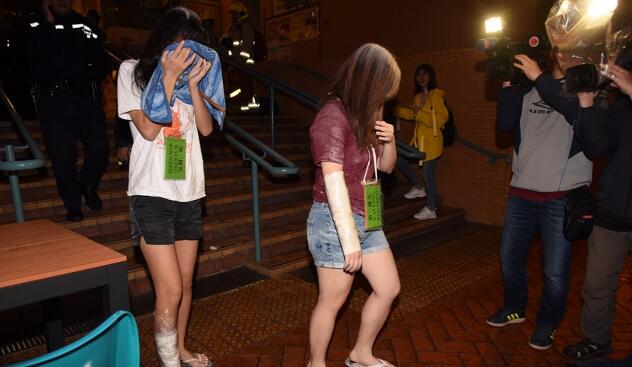 12名伤者大部分烧伤面、手及脚,其中送广华医院6名女生属一级烧伤,送伊利沙伯医院4男2女,4人一级烧伤、2人二级烧伤;医生经初步护理后,一名姓周(21岁)男生被转往威尔斯医院留医;一名姓陈(21岁)女生情况严重,3女2男生情况稳定,其余伤者已出院。