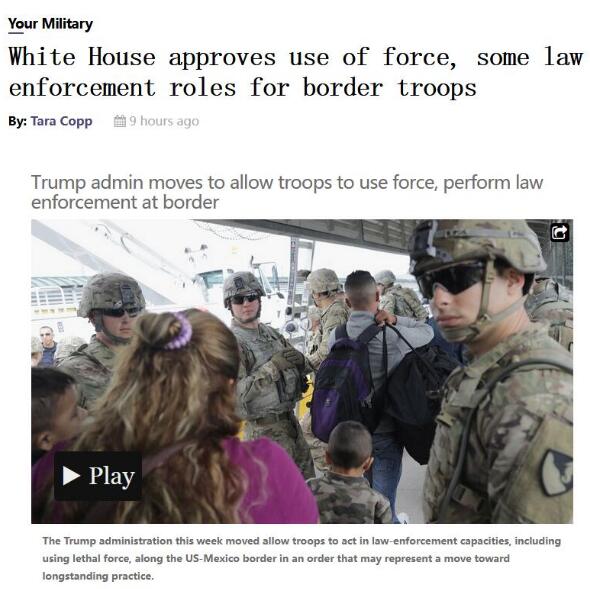 美国国防部此前曾宣布打算在南部边境部署7000名士兵。特朗普表示,他将向该地区派兵1.5万人。此外,美南部边境现有2100名国民警卫队军人。
