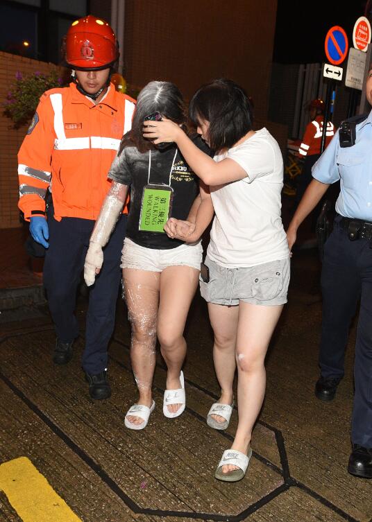 受傷12名學生,包括8女4男(18至23歲),分別手和面部燒傷,一名姓周男學生(21歲)經治理後,轉送威爾斯醫院留醫,現時情況穩定。一名姓陳女學生(21歲)則情況嚴重。另外,3女1男生情況穩定,其餘6人經敷治後已出院。
