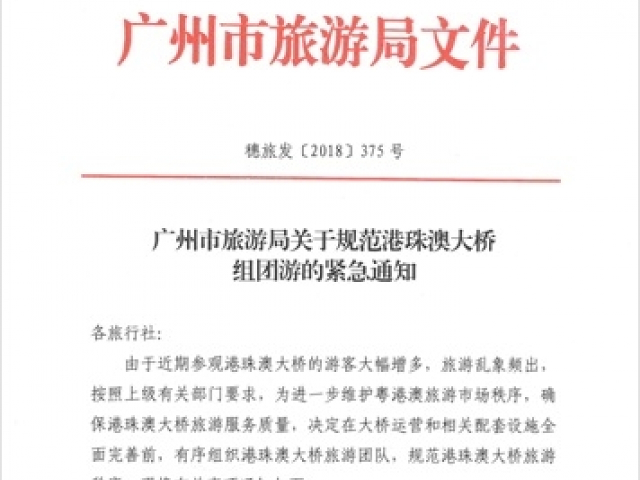 據了解,自港珠澳大橋開通後,經港珠澳大橋赴港旅遊的居民大增,旅行社相關業務大幅增加。與此同時,有不少不具有經營出境遊的旅行社,違規組織旅客赴港遊,對香港特別是東涌一帶居民生活造成困擾。此前,粵港雙方就此進行溝通,並達成相關一致意見。