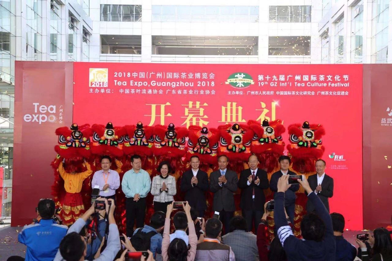 开幕典礼上,中国茶叶流通协会秘书长梅宇,2018中国(广州)国际茶业博览会、第十九届广州国际茶文化节承办单位广州益武国际展览有限公司董事长胡卫红分别致辞。