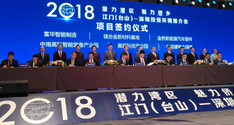 【香港商报网讯】记者盛芳龄报道:22日“潜力湾区 魅力侨乡”——2018江门(台山)—深圳投资环境推介会在深圳举行。推介会上共签约28个项目,总金额高达305亿。其中,工业投资项目总额达148.2亿;文旅项目投资达86.6亿;其他项目投资额达70.5亿。富华智能制造、金桥新能源汽车部件、镁合金新材料基地等18个签约项目上台签约。