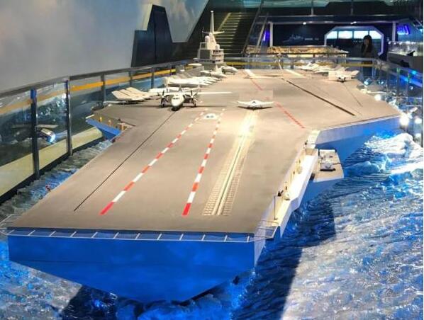 2017年《铭记光辉历史 开创强军伟业——庆祝中国人民解放军建军90周年主题展》上展出的航母模型。图片来源:黄国志
